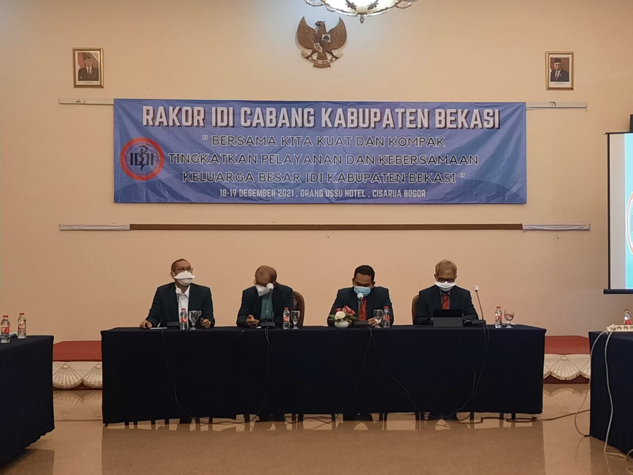 Acara Rapat Koordinasi (Rakor) IDI Kab Bekasi yang dilaksanakan pada tanggal 18 – 19 desember 2021 di Hotel USSU Cisarua Bogor berjalan lancar dan sukses. Rakor IDI KAB Bekasi ini dipimpin langsung oleh Ketua IDI Cabang Kab. Bekasi dr. Mulyana S,P MARS di Ruang Rapat Grand USSU Cisarua Bogor ”Bersama Kita Kuat dan Kompak tingkatkan Pelayanan dan Kebersamaan Keluarga besar IDI Kab Bekasi ” adalah tema pada sidang Rapat Kordinasi kali ini